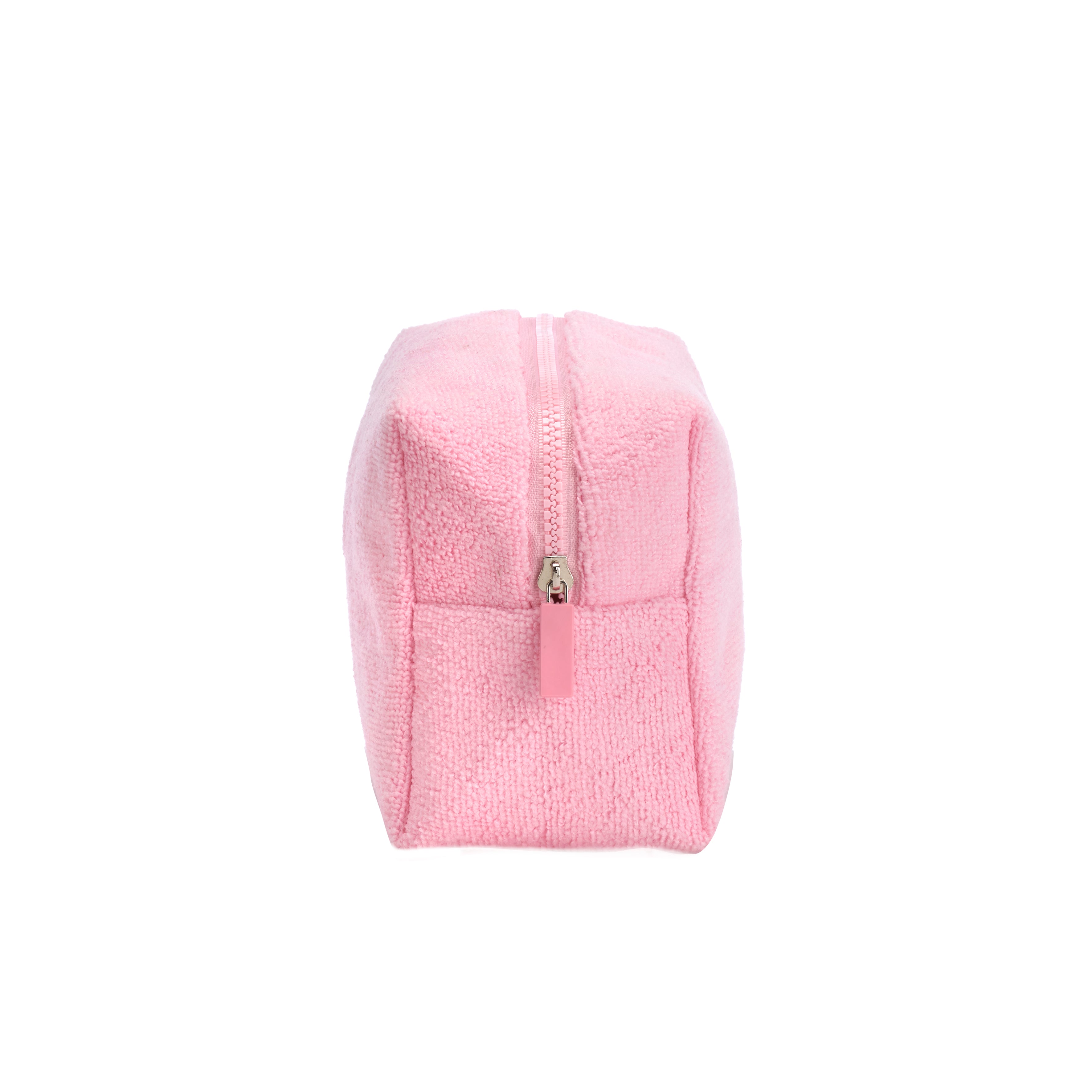 La morbidezza della spugna rosa incontra un dettaglio giocoso e distintivo: la patch ricamata a forma di pesce, che dona carattere e personalità a questa busta beauty case dal design fresco e contemporaneo.