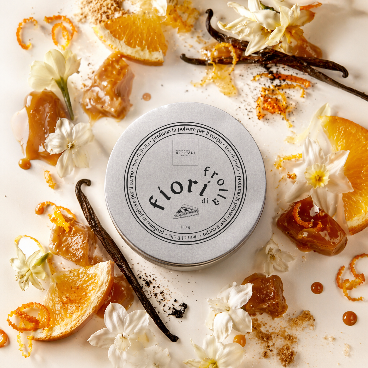 Una nuvola di purezza, come una coccola profumata che si posa sulla pelle. Il profumo in polvere Fiori di Frolla avvolge la pelle in una scia di fragranza e morbidezza, trasformando ogni applicazione in un rituale di benessere. La fragranza Fiori di Frolla persisterà durante la giornata lasciando la pelle setosa e profumata senza appesantirla, grazie alla leggerezza della texture. Formula vegana senza ingredienti o derivati di origine animale. Dermatologicamente testato.