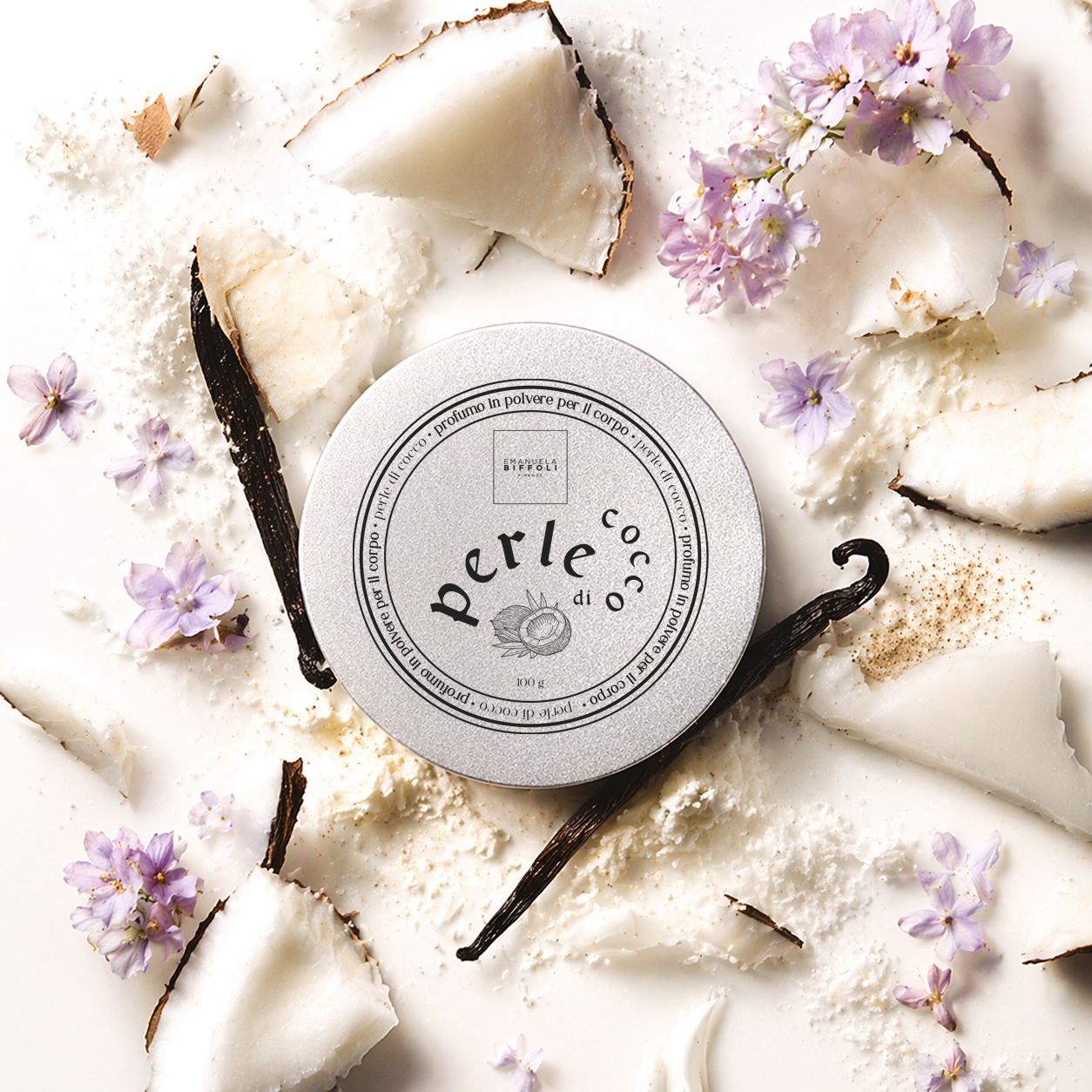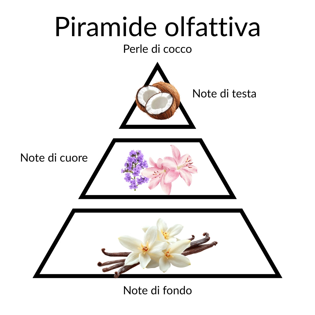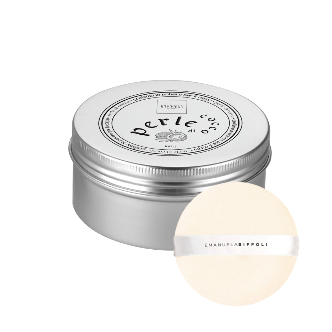 Perle di Cocco si posa sulla pelle con una delicatezza avvolgente, lasciando una scia fruttata e gourmand, dove la dolcezza morbida del cocco si apre su un cuore floreale e cipriato di eliotropio, per poi adagiarsi su un fondo caldo di bacche di vaniglia. La texture impalpabile e setosa accarezza la pelle, lasciandola vellutata, luminosa e delicatamente profumata a lungo, senza appesantirla. Un gesto intimo e raffinato che trasforma ogni applicazione in una coccola quotidiana. Formula vegana senza ingredienti o derivati di origine animale. Modo d’uso: Distribuire con il piumino incluso nella confezione su pelle asciutta per una sensazione di freschezza e morbidezza duratura. Evitare il contatto con gli occhi. In caso di contatto risciacquare con acqua.