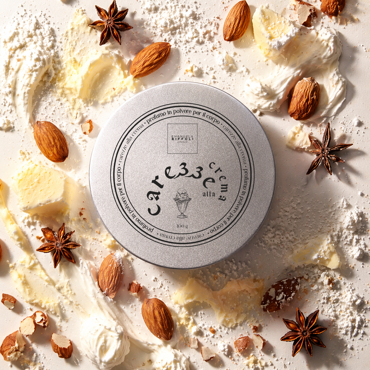 Una nuvola di purezza, come una coccola profumata che si posa sulla pelle. Il profumo in polvere Carezze alla Crema avvolge la pelle in una scia di fragranza e morbidezza, trasformando ogni applicazione in un rituale di benessere. La fragranza Carezze alla Crema persisterà durante la giornata lasciando la pelle setosa e profumata senza appesantirla, grazie alla leggerezza della texture. Formula vegana senza ingredienti o derivati di origine animale. Dermatologicamente testato.