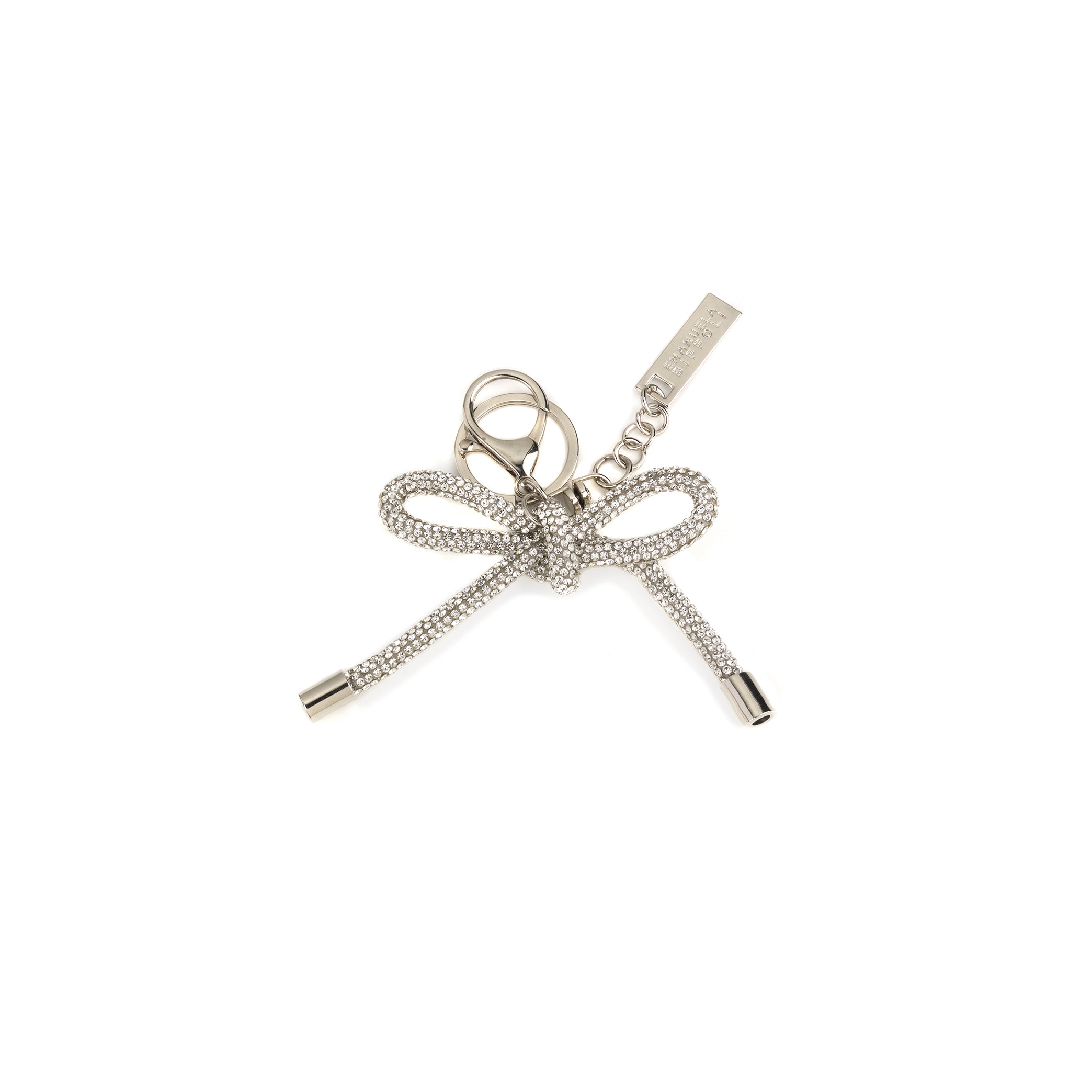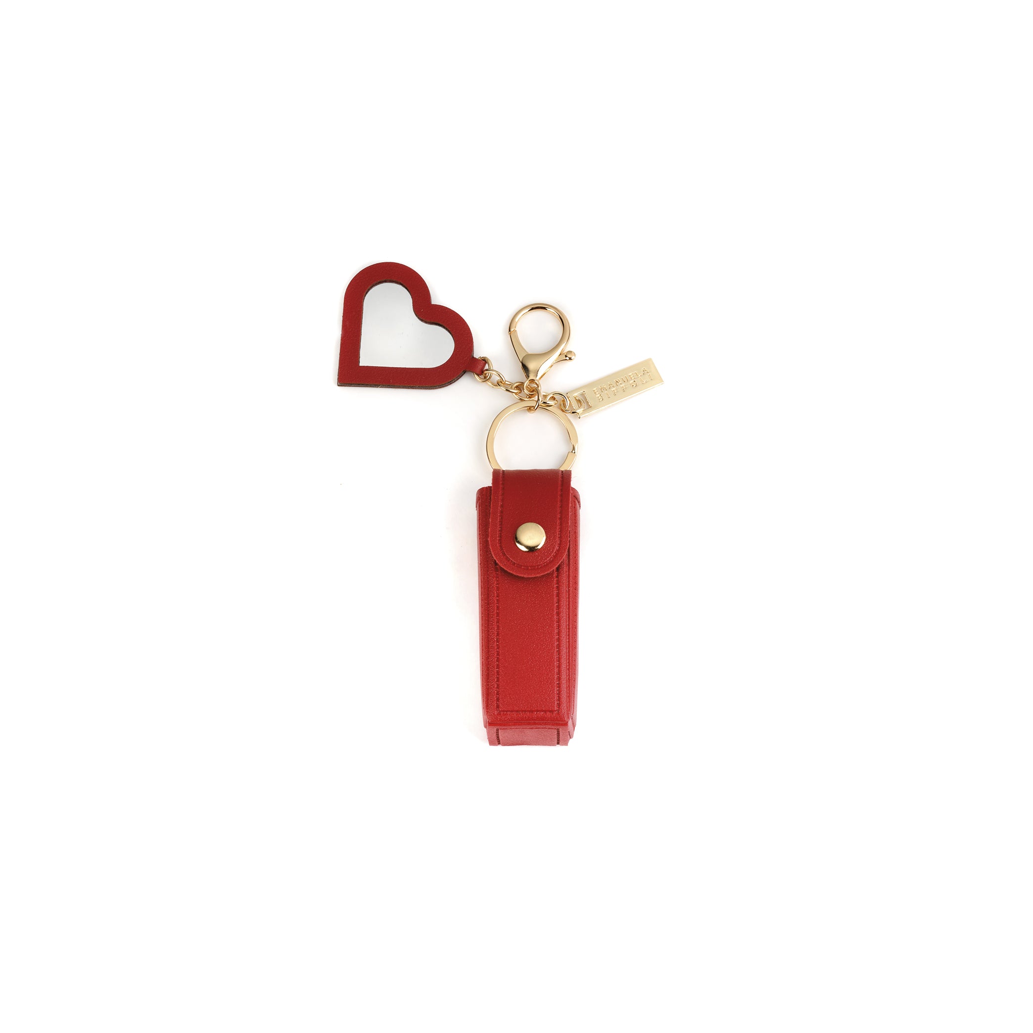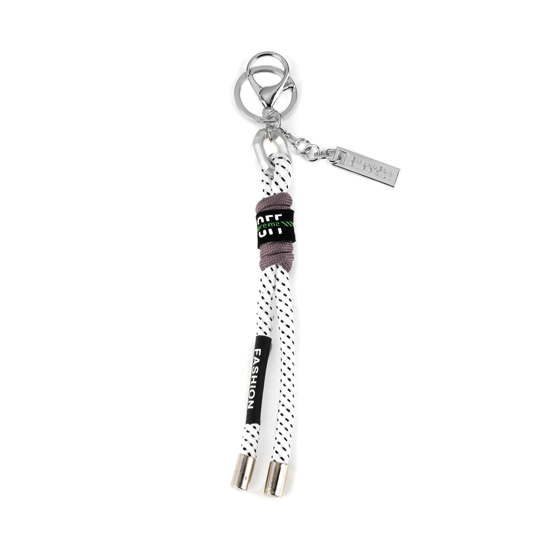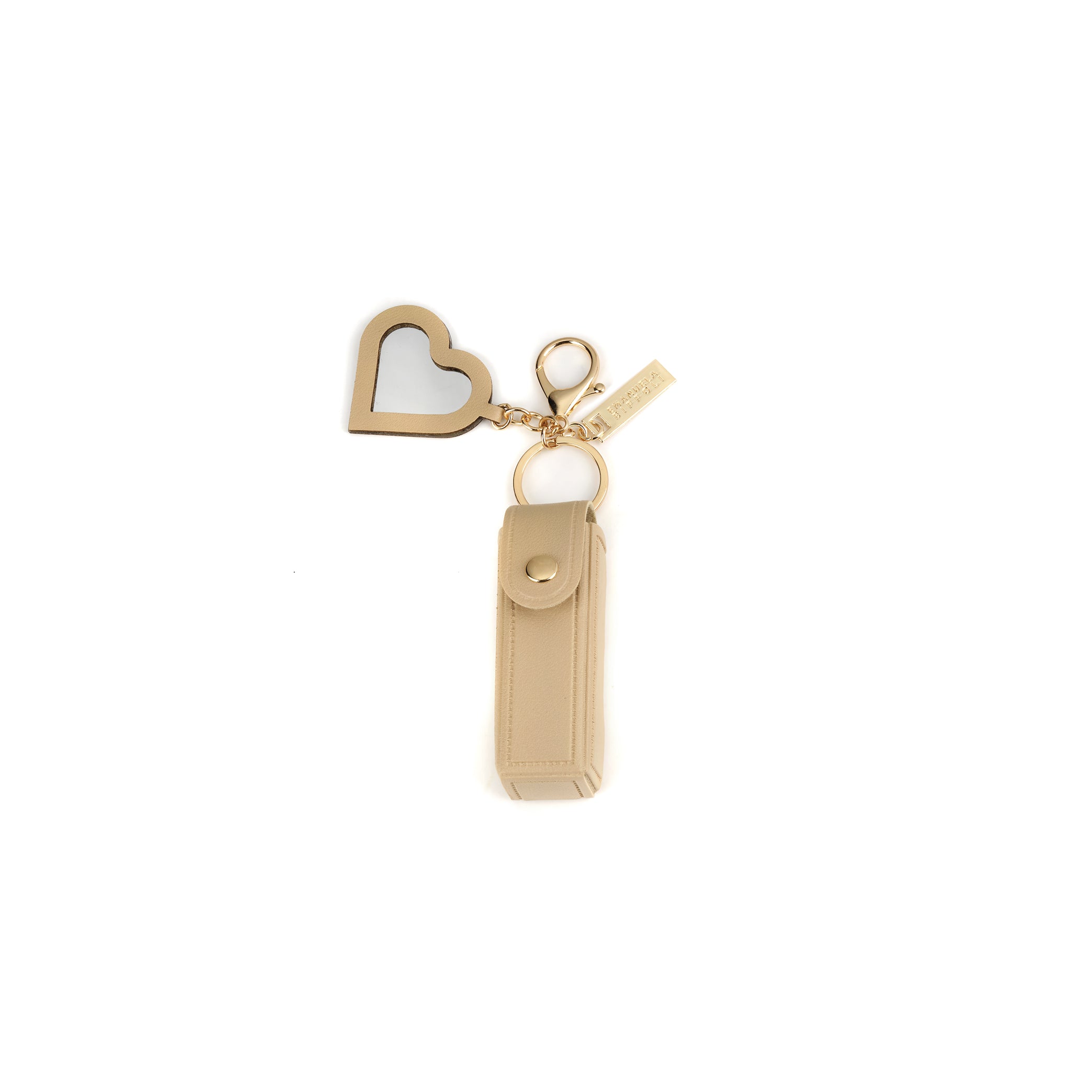 Chiusura: moschettone e anello in metallo dorato. Logo: targhetta in metallo oro.